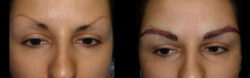 Before and after 600 grafts to the eyebrows total over one procedure.