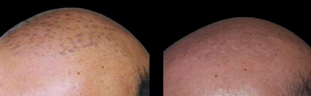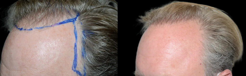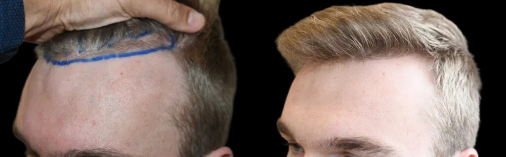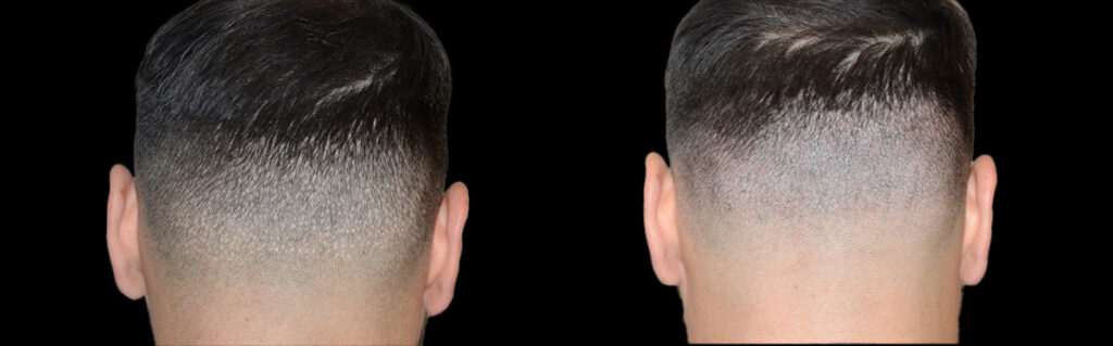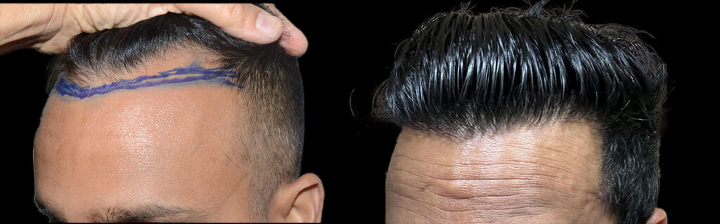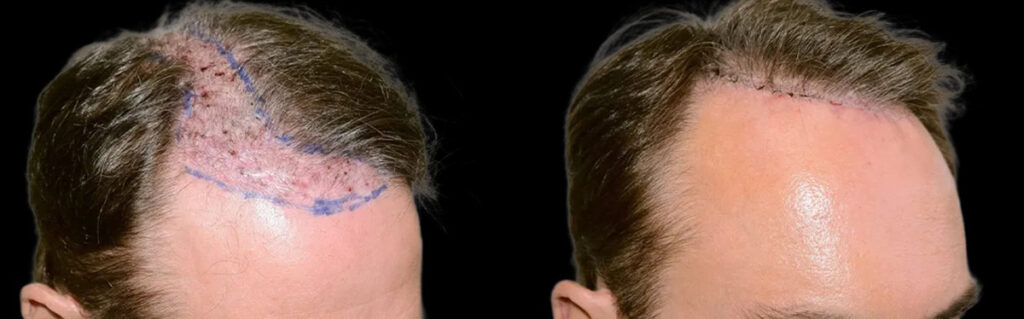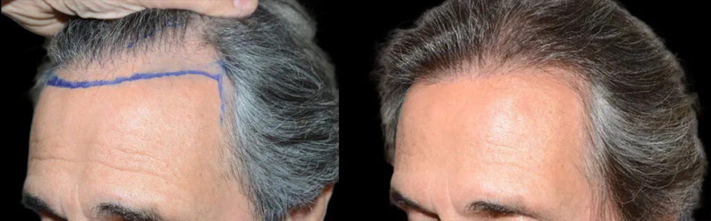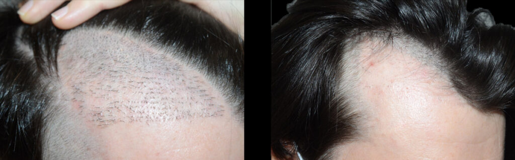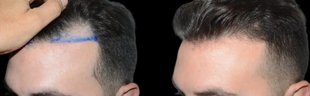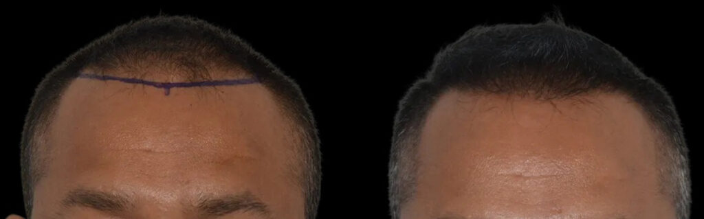 Before and after 2400 FUE grafts on this 34 year old patient.